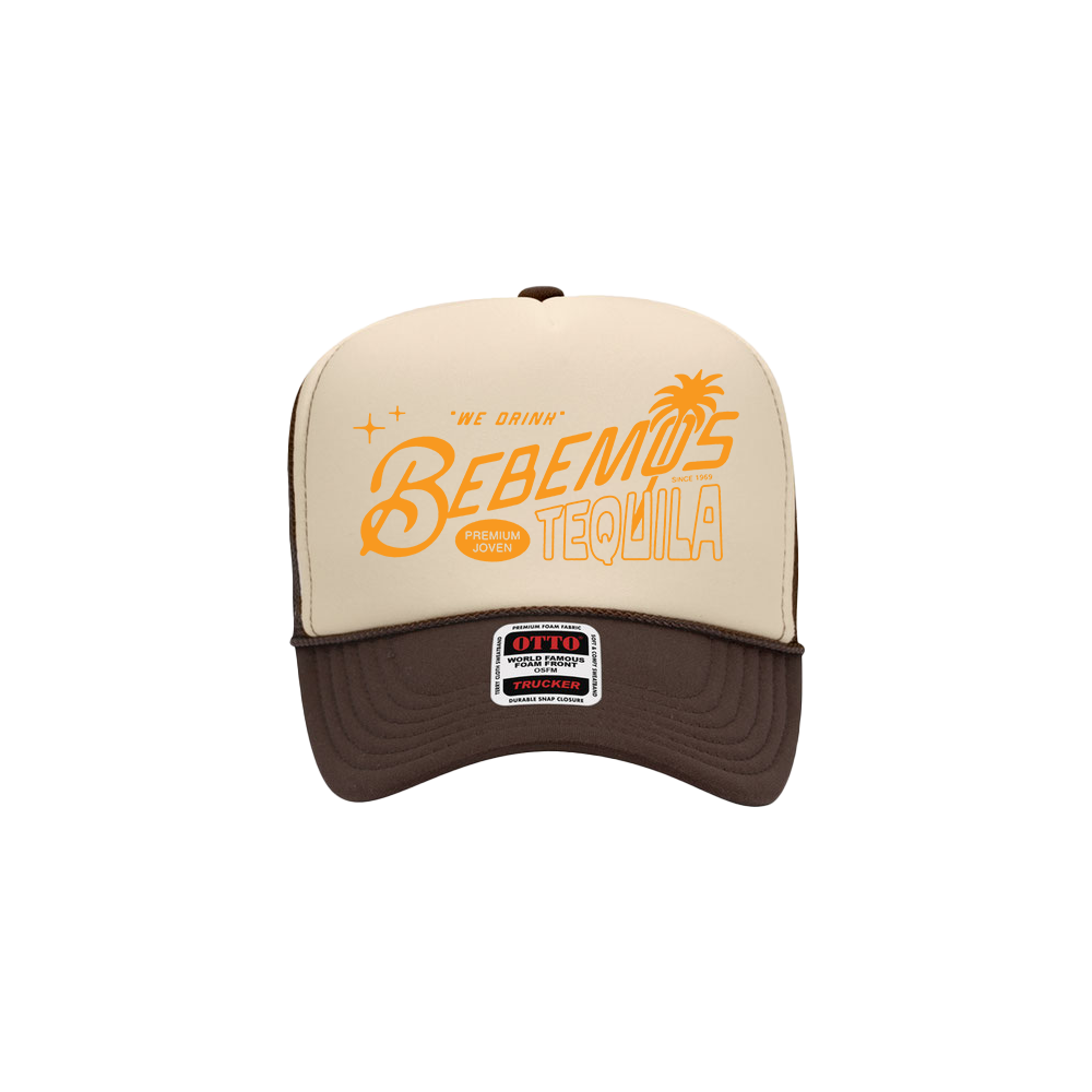 Trucker hat with the "We Drink" Bebemos logo printed on the front